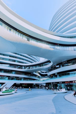 銀河SOHOは、未来的なデザインをした複合施設です。世界的に有名なイラク出身の建築家ザハ・ハディッドによって設計されました。とてもユニークな形をしており、曲線を用いて4つのドームが連結しています。外観もフォトスポットとして面白いですが、中はショッピングモールやオフィス、レストランが入っており、見るだけなく、中で買い物も楽しめます。