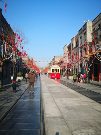 前門大街は、天安門広場の南側にある歴史的な商店街です。実は歴史があるというのは、清朝時代からすでにこの場所は繁栄しており、当時の面影を色濃く残しています。レトロな街並みと、古い建築様式の建物がならび、その中に色々なお店が入っています。前門大街には路面電車も走っており、街を歩いているだけでその雰囲気にワクワクしていきます。